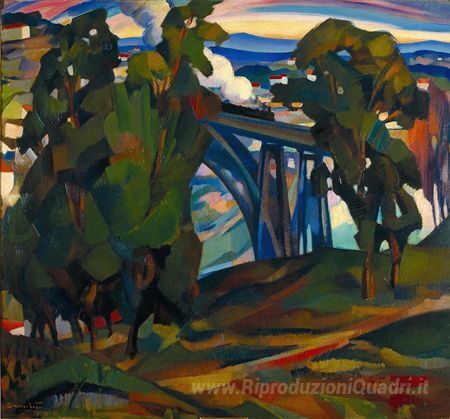 Ti offriamo una riproduzione artigianale su tela dell'opera famosa 'A Ponte de D. Maria' di Eduardo Viana, dal Museo delle Riproduzioni.