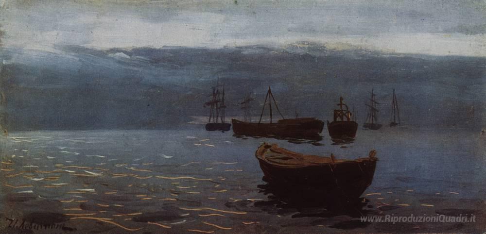Ti offriamo una riproduzione artigianale su tela dell'opera famosa 'A Volga. Scende la sera.' di Isaac Levitan, dal Museo delle Riproduzioni.