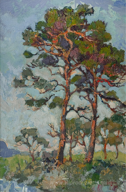 Ti offriamo una riproduzione artigianale su tela dell'opera famosa 'Abeti rossi, con tronchi di Kenilworth' di Gregoire Boonzaier, dal Museo delle Riproduzioni.