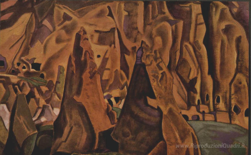 Ti offriamo una riproduzione artigianale su tela dell'opera famosa 'Abitazioni rupestri (Arizona)' di Nicholas Roerich, dal Museo delle Riproduzioni.