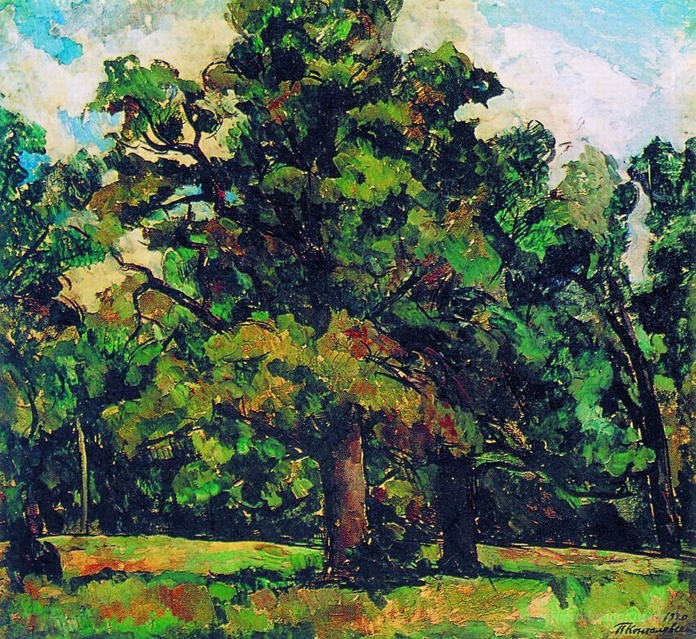 Ti offriamo una riproduzione artigianale su tela dell'opera famosa 'Abramtsevo. Oak Grove.' di Pyotr Konchalovsky, dal Museo delle Riproduzioni.