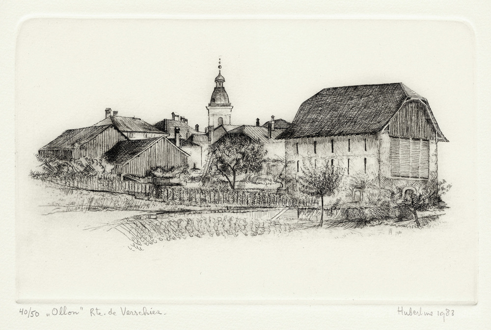 Ti offriamo una riproduzione artigianale su tela dell'opera famosa 'acquaforte: Vista sul villaggio di Ollon, visto dalla strada a V' di Hubertine Heijermans, dal Museo delle Riproduzioni.