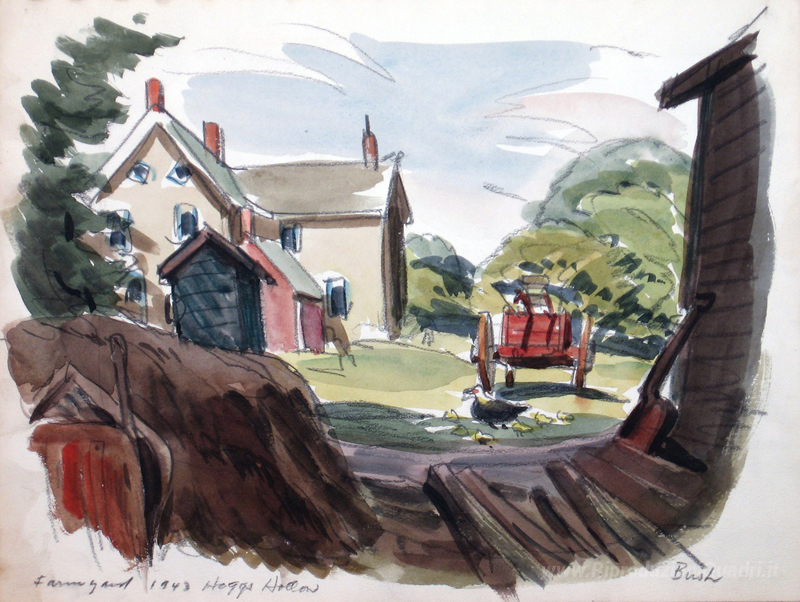Ti offriamo una riproduzione artigianale su tela dell'opera famosa 'Aia, di Hogg Hollow, Toronto' di Jack Bush, dal Museo delle Riproduzioni.
