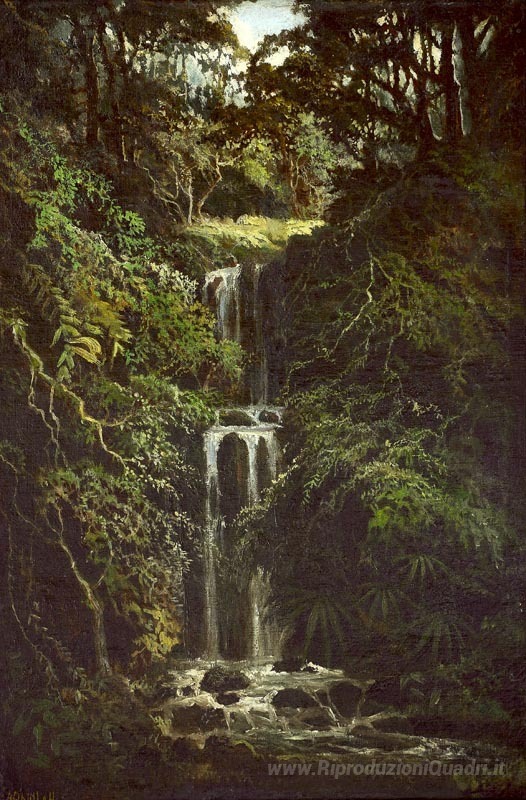 Ti offriamo una riproduzione artigianale su tela dell'opera famosa 'Air Terjun' di Abdullah Suriosubroto, dal Museo delle Riproduzioni.
