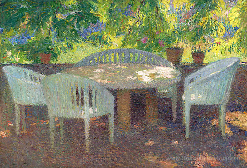 Ti offriamo una riproduzione artigianale su tela dell'opera famosa 'Al Grand Marquayrol' di Henri Martin, dal Museo delle Riproduzioni.
