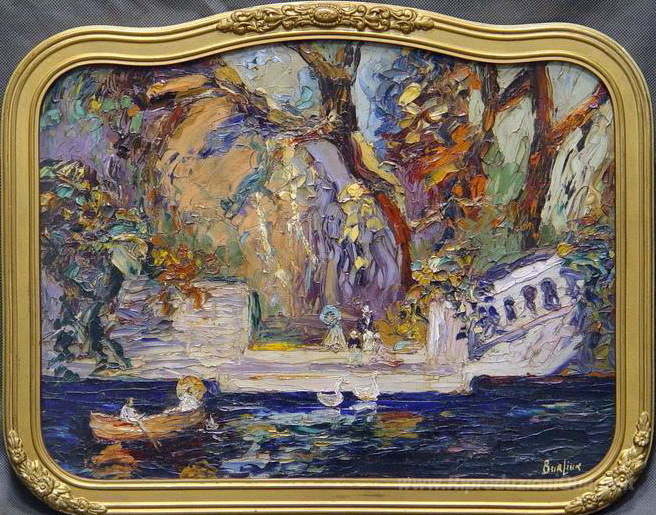 Benvenuti nel mondo affascinante dei dipinti a olio italiani, dove ogni opera è una finestra su emozioni e storie uniche. Oggi vi presentiamo Al Parco, una meravigliosa creazione dell'artista David Burliuk, celebre pioniere del movimento avanguardista. Burliuk, con la sua capacità di fondere tecniche tradizionali e innovazione, riesce a trasmettere un’intensa energia in ogni pennellata.
