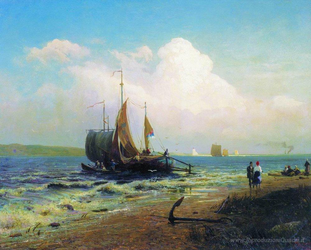 Ti offriamo una riproduzione artigianale su tela dell'opera famosa 'Al River. Giorno ventoso' di Fyodor Vasilyev, dal Museo delle Riproduzioni.