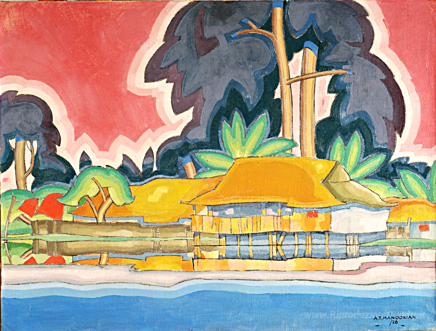Ti offriamo una riproduzione artigianale su tela dell'opera famosa 'Ala Wai, Honolulu' di Arman Manookian, dal Museo delle Riproduzioni.