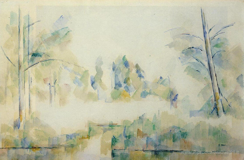Ti offriamo una riproduzione artigianale su tela dell'opera famosa 'Alberi da acqua' di Paul Cezanne, dal Museo delle Riproduzioni.
