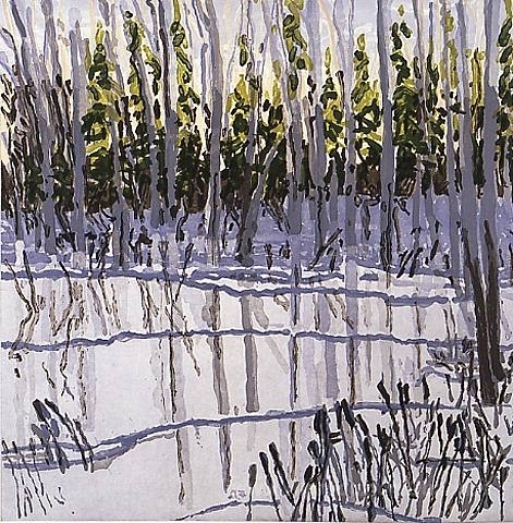 Ti offriamo una riproduzione artigianale su tela dell'opera famosa 'Alberi riflessa on Ice' di Neil Welliver, dal Museo delle Riproduzioni.