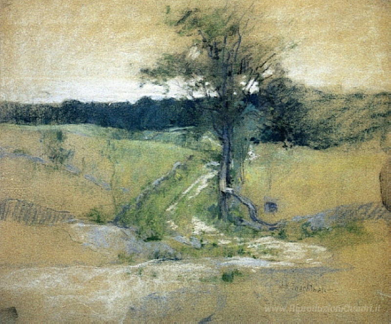 Ti offriamo una riproduzione artigianale su tela dell'opera famosa 'Albero da una strada' di John Henry Twachtman, dal Museo delle Riproduzioni.