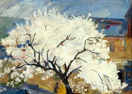 Ti offriamo una riproduzione artigianale su tela dell'opera famosa 'Albicocco in fiore' di Martiros Saryan, dal Museo delle Riproduzioni.
