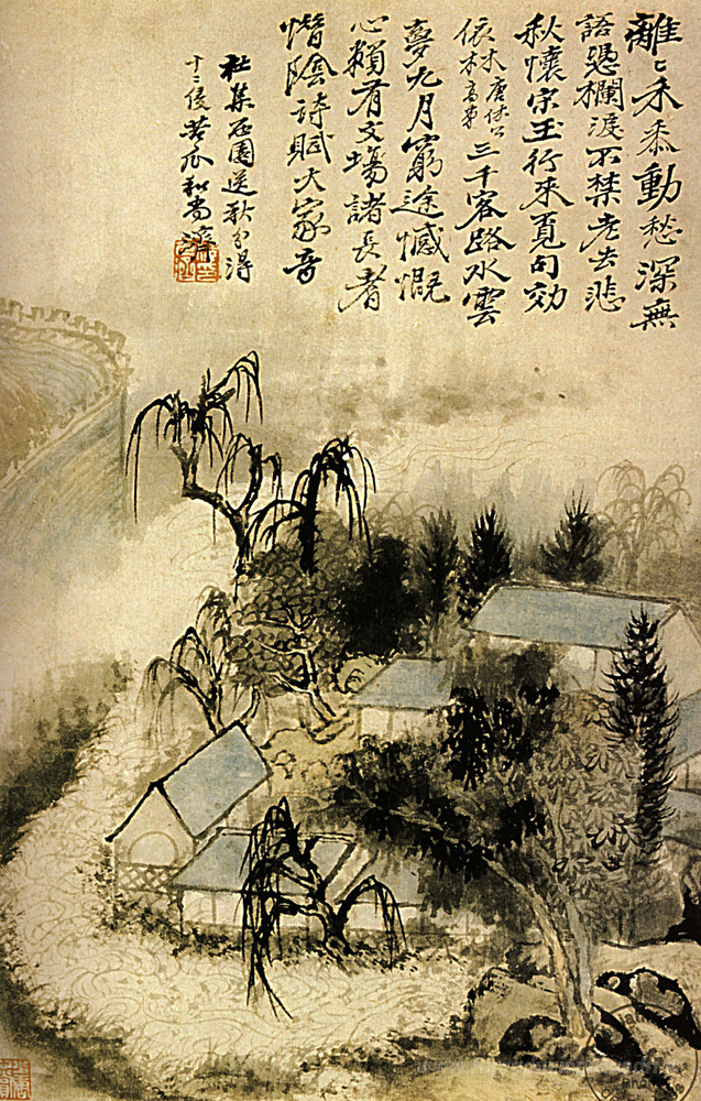 Ti offriamo una riproduzione artigianale su tela dell'opera famosa 'Amleto nella nebbia autunnale' di Shitao, dal Museo delle Riproduzioni.