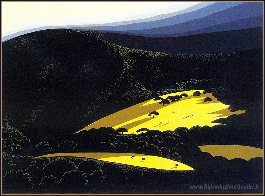 Ti offriamo una riproduzione artigianale su tela dell'opera famosa 'Ancora Valley' di Eyvind Earle, dal Museo delle Riproduzioni.