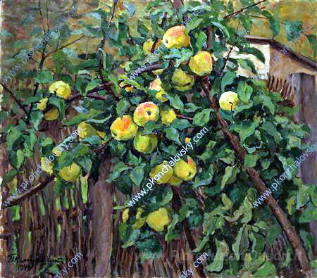 Ti offriamo una riproduzione artigianale su tela dell'opera famosa 'Apple tree dal recinto' di Pyotr Konchalovsky, dal Museo delle Riproduzioni.
