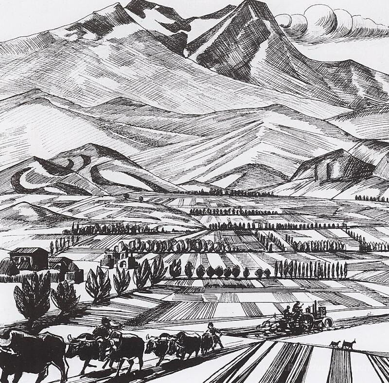 Benvenuti nel mondo vibrante dell'arte a olio con Aragats, un capolavoro del talentuoso artista armeno Martiros Saryan. Questo dipinto esprime la magnificenza della natura, catturando con maestria la luce e i colori del paesaggio montano armene. Saryan, noto per il suo stile post-impressionista, riesce a trasmettere emozioni profonde attraverso la sua palette ricca e la gestualità dinamica del pennello, rendendo ogni opera un viaggio estetico.