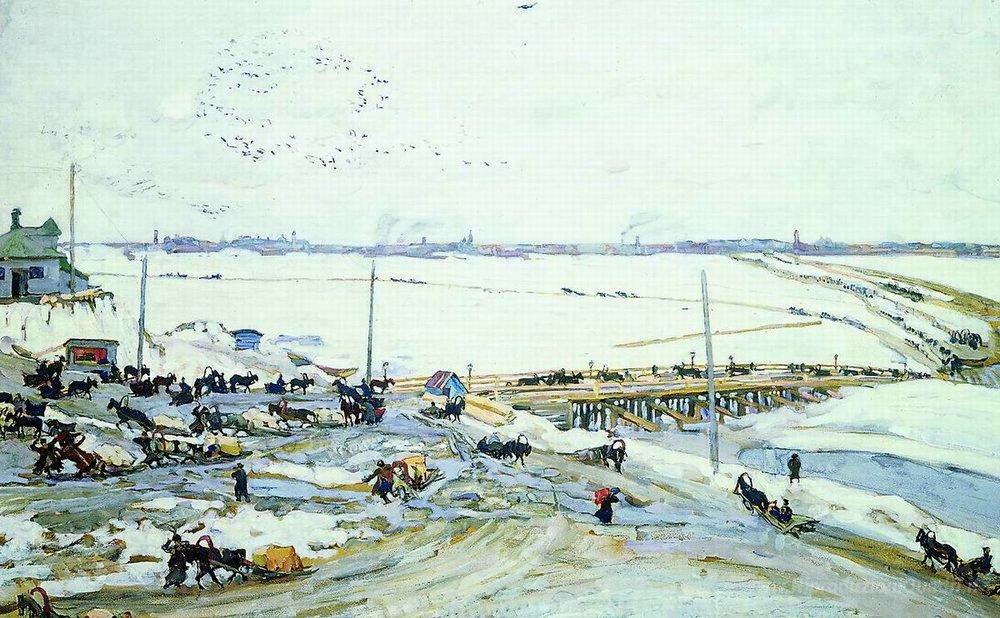 Immersi nella ricca tradizione dell'arte italiana, i dipinti a olio rappresentano un'armonia perfetta tra tecnica e sensibilità artistica. Un esempio straordinario è l'opera Attraversando Oka. Nizhny Novgorod dell'acclamato artista Konstantin Yuon, noto per la sua abilità nel catturare l'essenza dei paesaggi e delle atmosfere. Con una palette ricca e vibrante, Yuon riesce a trasmettere la profondità delle emozioni umane attraverso la luce e il colore, rendendo ogni sua opera un viaggio nell'anima.