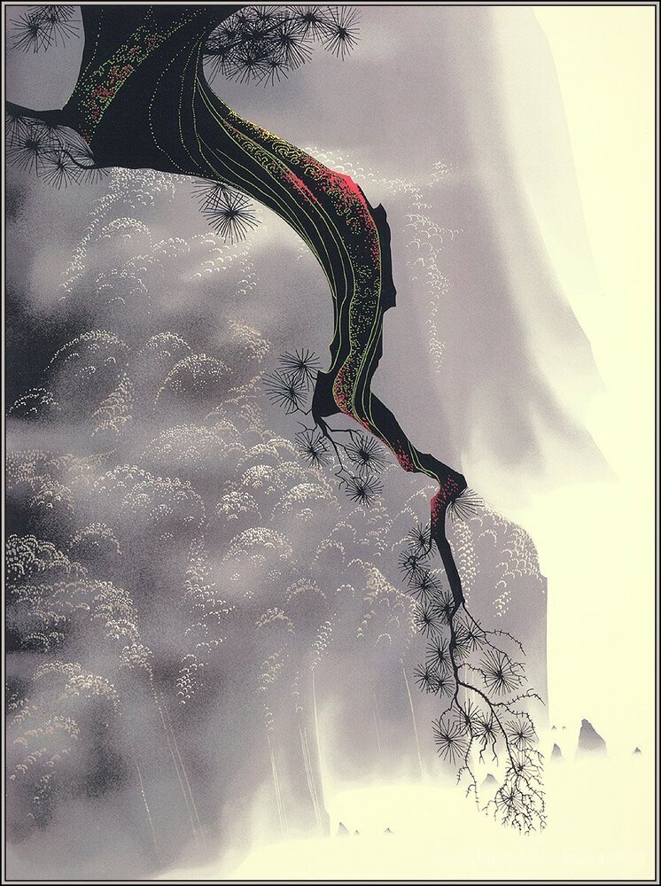 Ti offriamo una riproduzione artigianale su tela dell'opera famosa 'Attraverso la nebbia' di Eyvind Earle, dal Museo delle Riproduzioni.