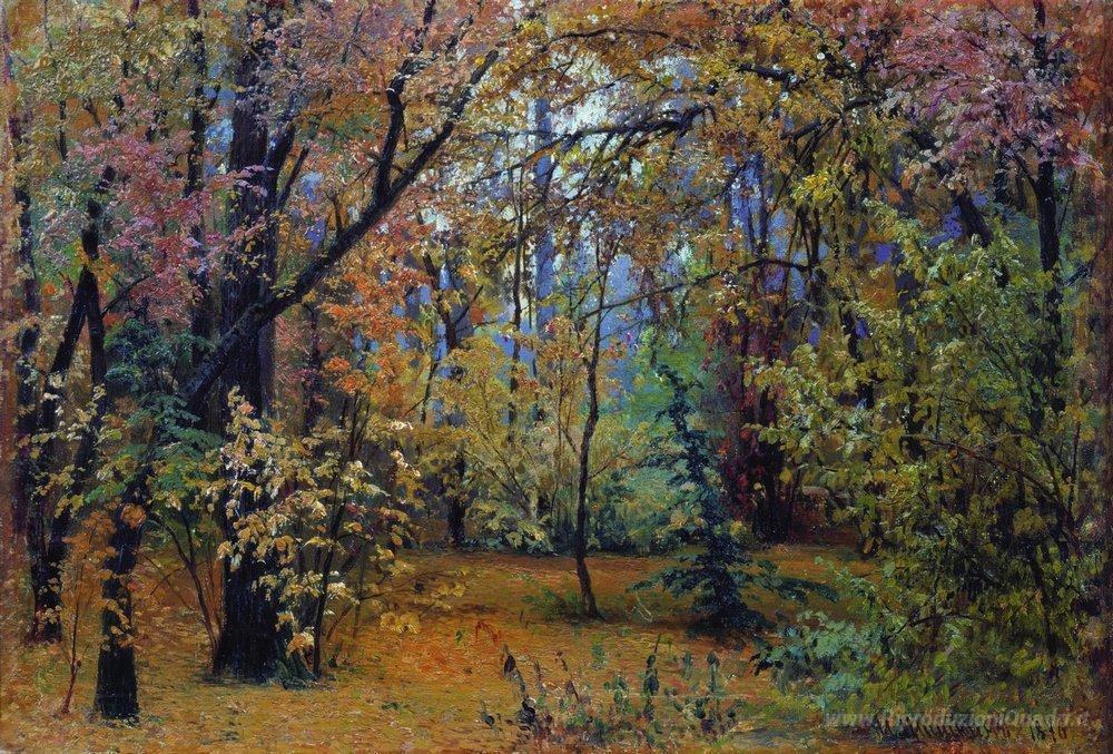 Ti offriamo una riproduzione artigianale su tela dell'opera famosa 'Autumn forest' di Ivan Shishkin, dal Museo delle Riproduzioni.