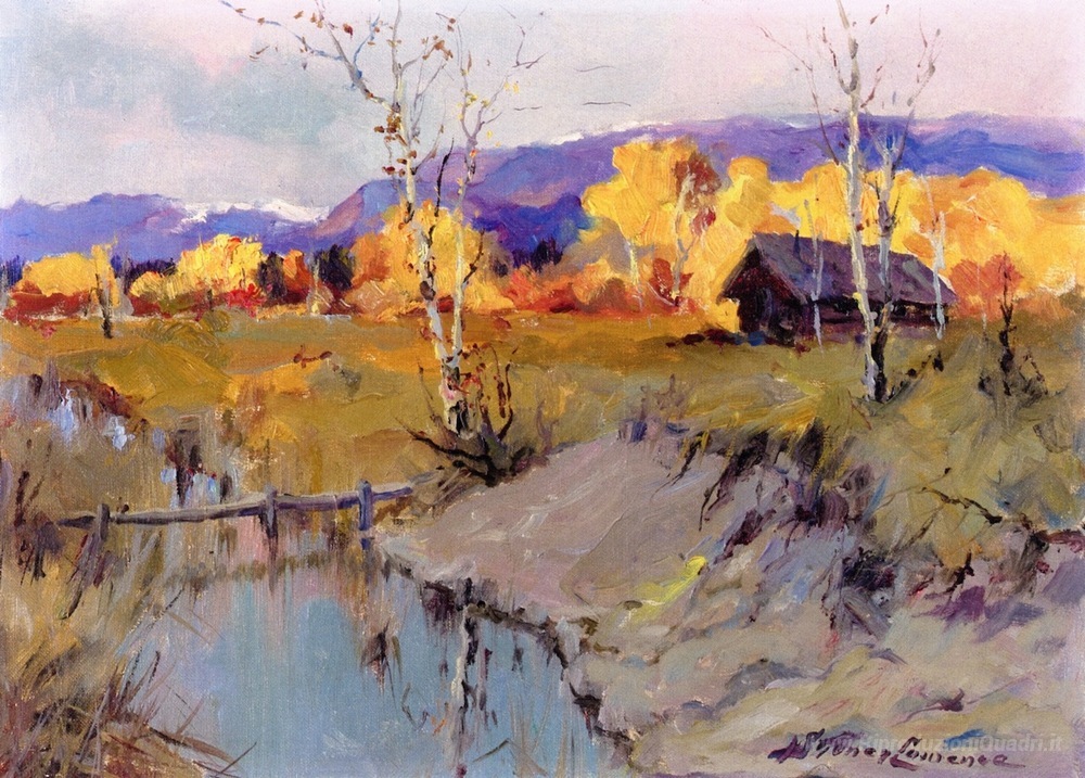 Ti offriamo una riproduzione artigianale su tela dell'opera famosa 'Autumn Morning' di Sydney Laurence, dal Museo delle Riproduzioni.