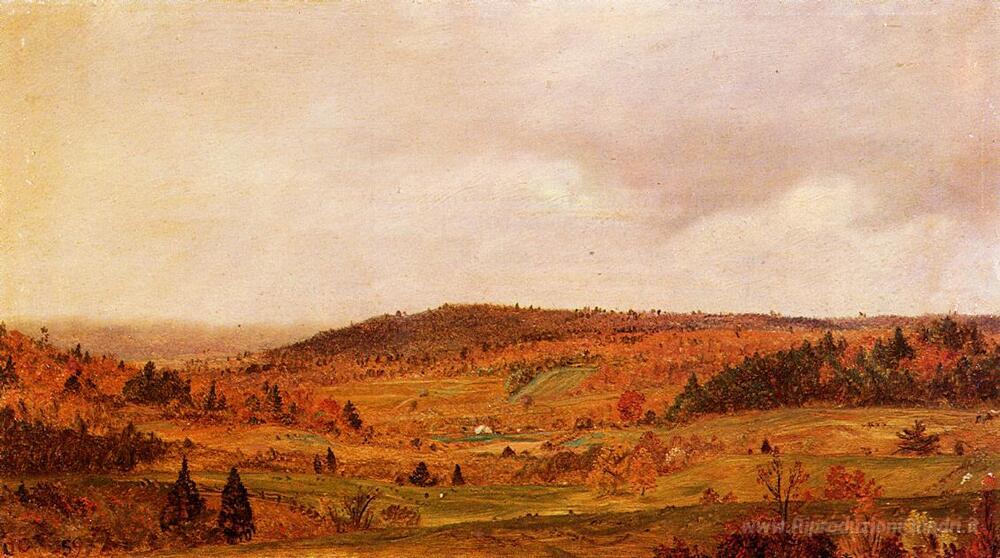 Ti offriamo una riproduzione artigianale su tela dell'opera famosa 'Autunno Doccia' di Frederic Edwin Church, dal Museo delle Riproduzioni.