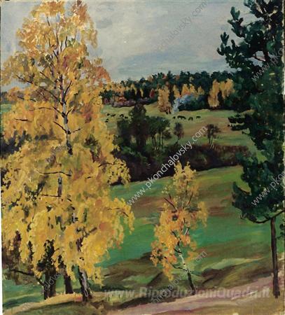 Ti offriamo una riproduzione artigianale su tela dell'opera famosa 'Autunno. Giallo legno.' di Pyotr Konchalovsky, dal Museo delle Riproduzioni.