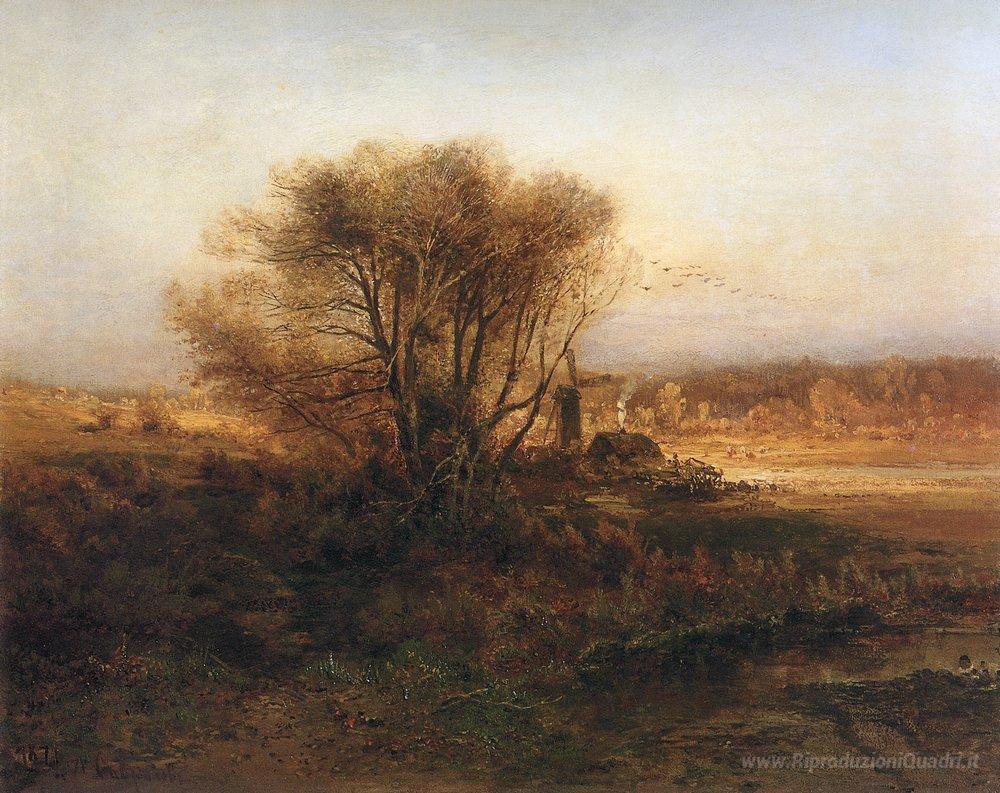 Ti offriamo una riproduzione artigianale su tela dell'opera famosa 'Autunno' di Aleksey Savrasov, dal Museo delle Riproduzioni.