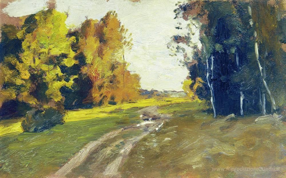 Ti offriamo una riproduzione artigianale su tela dell'opera famosa 'Autunno sera. Sentiero nel bosco.' di Isaac Levitan, dal Museo delle Riproduzioni.