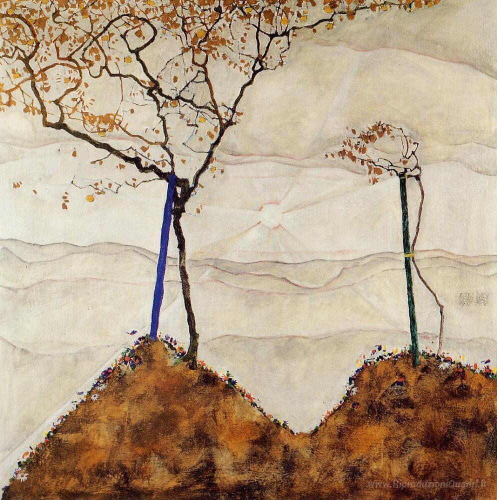 Ti offriamo una riproduzione artigianale su tela dell'opera famosa 'Autunno Sun' di Egon Schiele, dal Museo delle Riproduzioni.