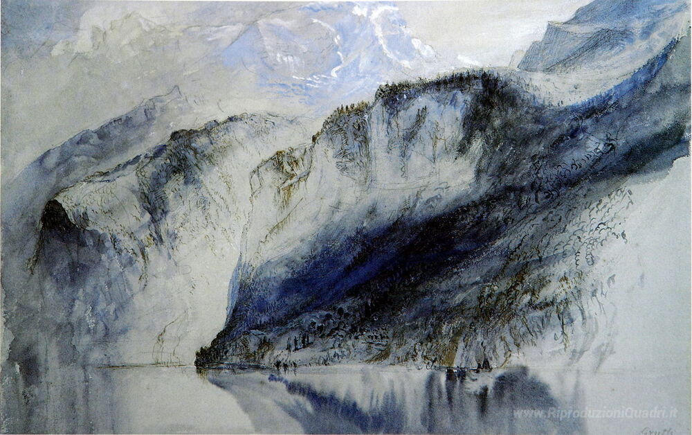 Ti offriamo una riproduzione artigianale su tela dell'opera famosa 'Baia di Uri, Lago di Lucerna' di John Ruskin, dal Museo delle Riproduzioni.