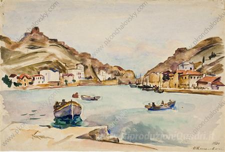 Ti offriamo una riproduzione artigianale su tela dell'opera famosa 'Balaklava. Il porto.' di Pyotr Konchalovsky, dal Museo delle Riproduzioni.