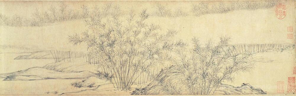 Immergetevi nella sublime bellezza dell'opera di Guan Daosheng, artista di spicco della tradizione pittorica cinese, noto per la sua straordinaria maestria nell'arte del paesaggio. Il dipinto Bamboo Groves nella nebbia e pioggia (particolare) è un perfetto esempio della sua capacità di evocare emozioni profonde attraverso la delicatezza delle sue pennellate e l'uso sapiente delle sfumature. La rappresentazione dei bambù, avvolti in una dolce nebbia e bagnati dalla pioggia, crea un'atmosfera di serenità e contemplazione.