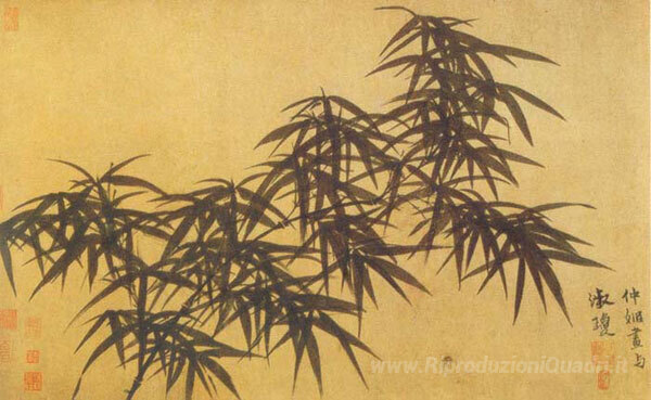 Ti offriamo una riproduzione artigianale su tela dell'opera famosa 'Bamboo Ink' di Guan Daosheng, dal Museo delle Riproduzioni.