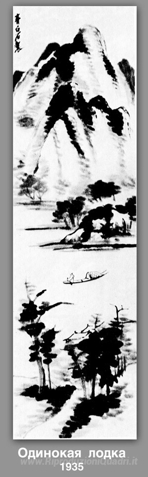 Ti offriamo una riproduzione artigianale su tela dell'opera famosa 'Barca sola' di Qi Baishi, dal Museo delle Riproduzioni.
