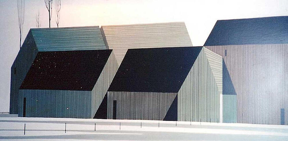 Ti offriamo una riproduzione artigianale su tela dell'opera famosa 'Barns' di Eyvind Earle, dal Museo delle Riproduzioni.