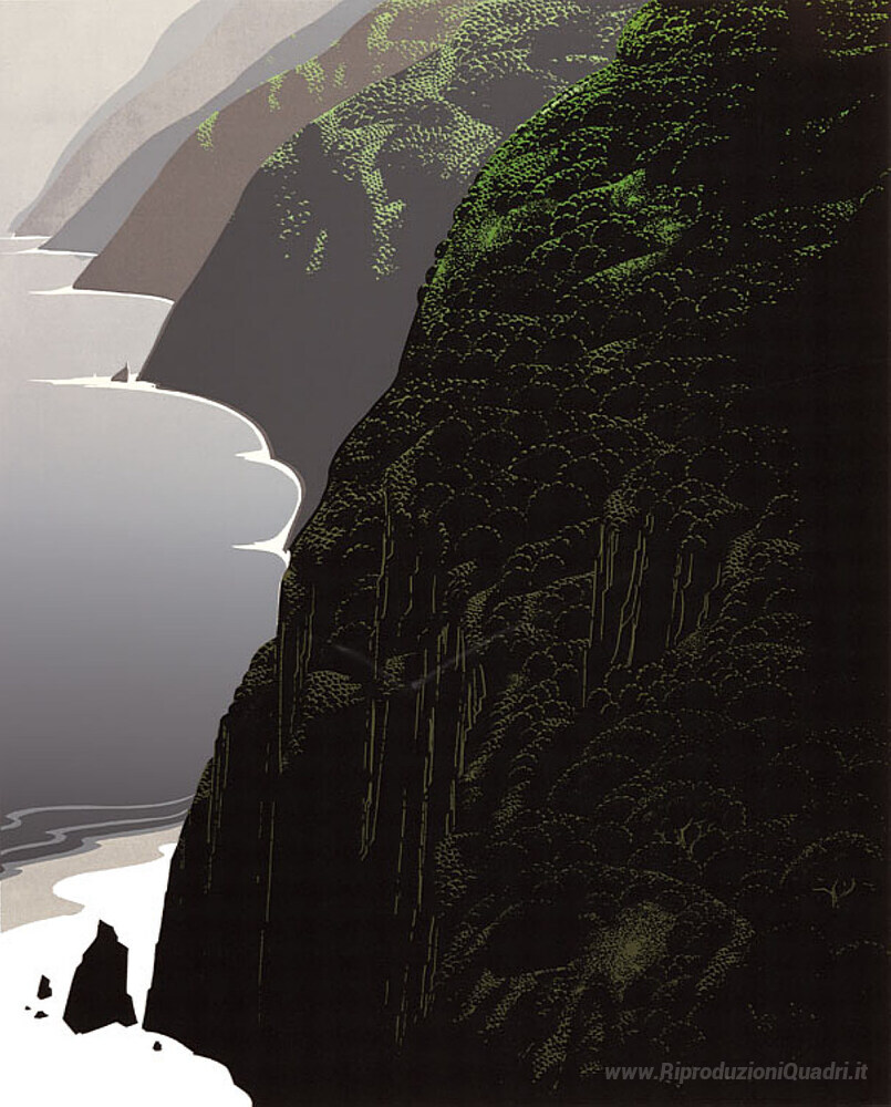 Ti offriamo una riproduzione artigianale su tela dell'opera famosa 'Big Sur Coastline' di Eyvind Earle, dal Museo delle Riproduzioni.