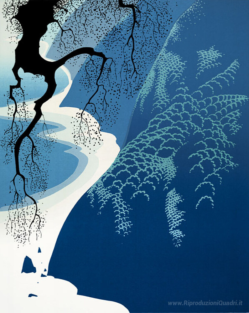 Ti offriamo una riproduzione artigianale su tela dell'opera famosa 'Big Sur e Branch' di Eyvind Earle, dal Museo delle Riproduzioni.