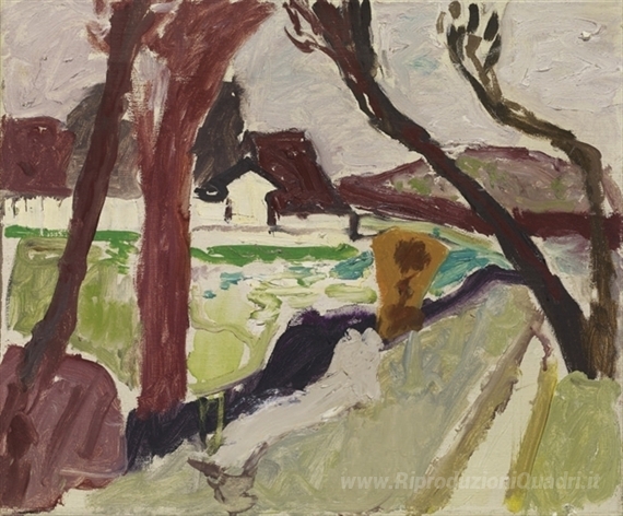 Ti offriamo una riproduzione artigianale su tela dell'opera famosa 'Blick auf Kloster Fahr durch B?ume' di Max Gubler, dal Museo delle Riproduzioni.