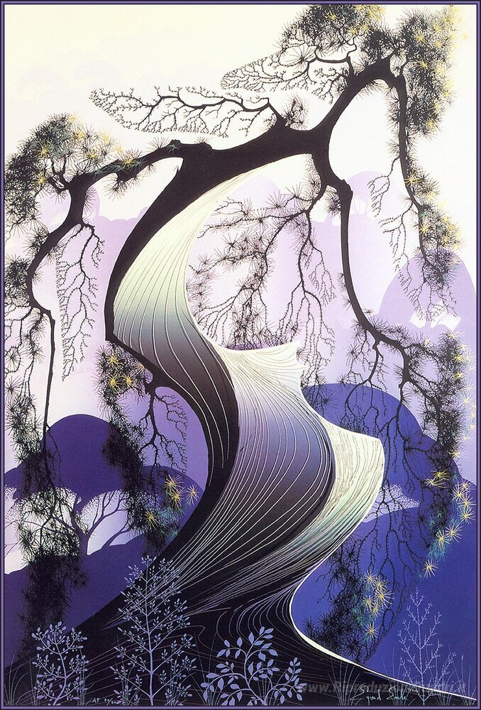 Ti offriamo una riproduzione artigianale su tela dell'opera famosa 'Bonsai' di Eyvind Earle, dal Museo delle Riproduzioni.
