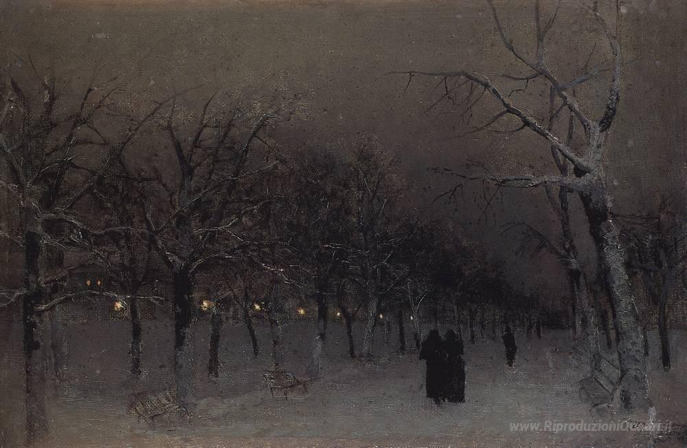 Ti offriamo una riproduzione artigianale su tela dell'opera famosa 'Boulevard in serata.' di Isaac Levitan, dal Museo delle Riproduzioni.