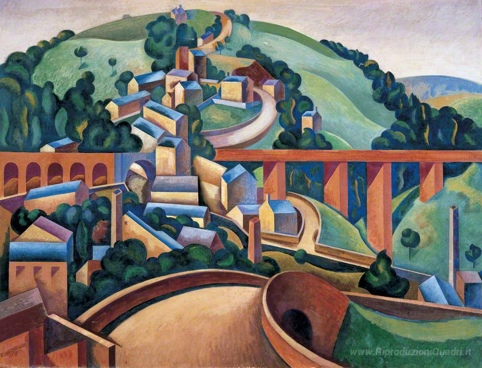 Ti offriamo una riproduzione artigianale su tela dell'opera famosa 'Broadbottom, nei pressi di Glossop' di Edward Wadsworth, dal Museo delle Riproduzioni.