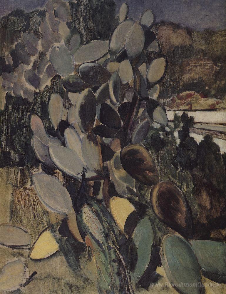 Ti offriamo una riproduzione artigianale su tela dell'opera famosa 'Cactus' di Kuzma Petrov-Vodkin, dal Museo delle Riproduzioni.