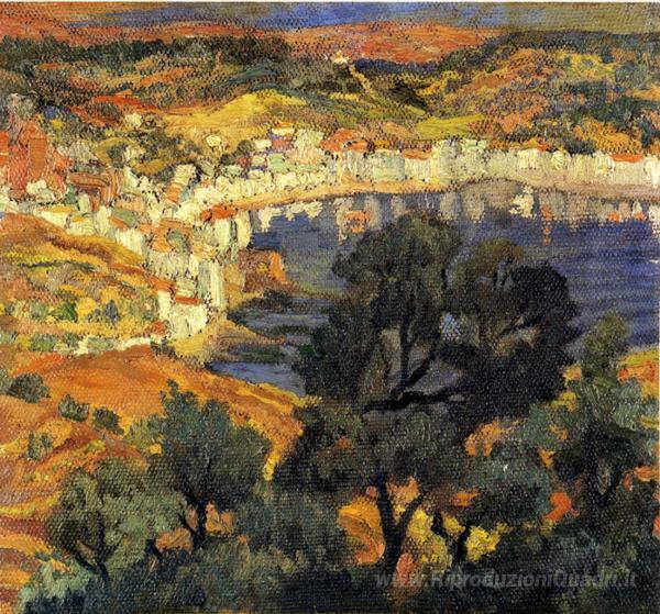 Ti offriamo una riproduzione artigianale su tela dell'opera famosa 'Cadaques' di Salvador Dali, dal Museo delle Riproduzioni.