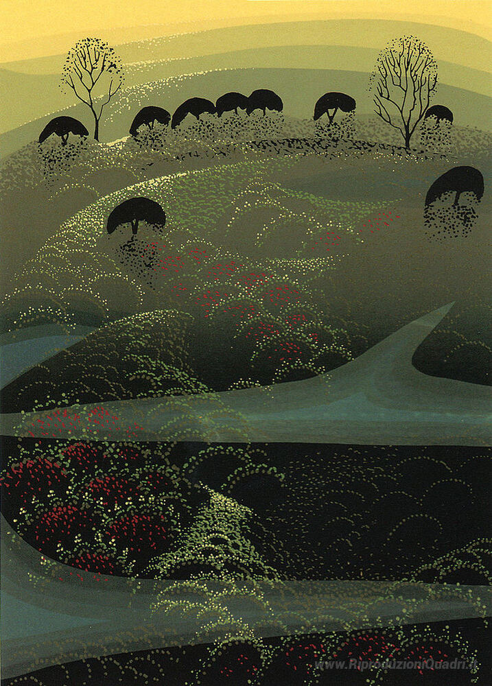 Ti offriamo una riproduzione artigianale su tela dell'opera famosa 'California Miniature' di Eyvind Earle, dal Museo delle Riproduzioni.