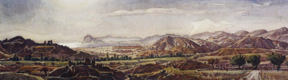 Ti offriamo una riproduzione artigianale su tela dell'opera famosa 'Campagna di Crimea' di Konstantin Bogaevsky, dal Museo delle Riproduzioni.