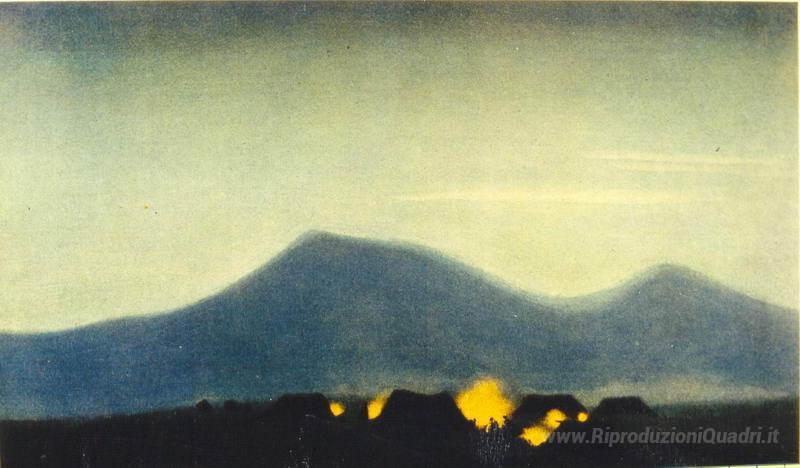 Ti offriamo una riproduzione artigianale su tela dell'opera famosa 'Campo Tibetian' di Nicholas Roerich, dal Museo delle Riproduzioni.