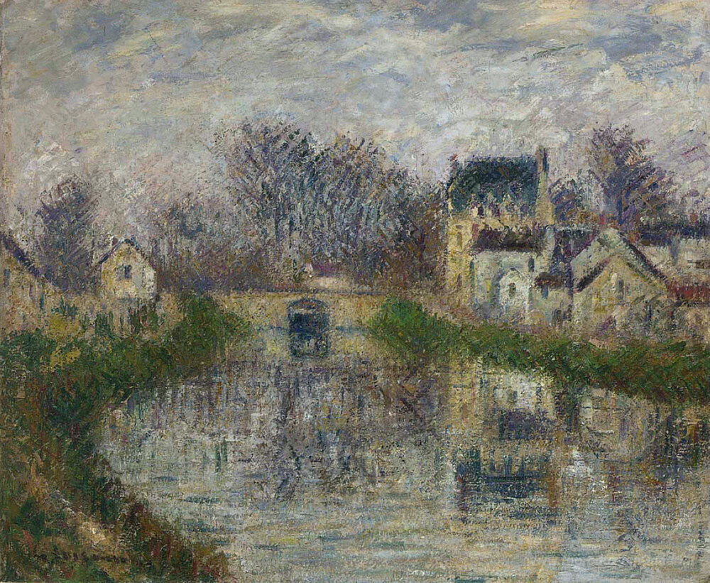 Ti offriamo una riproduzione artigianale su tela dell'opera famosa 'Canale di Moret' di Gustave Loiseau, dal Museo delle Riproduzioni.