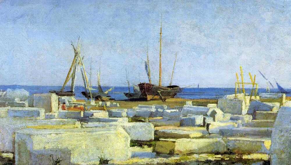 Ti offriamo una riproduzione artigianale su tela dell'opera famosa 'Caricamento in marmo' di Nikolai Ge, dal Museo delle Riproduzioni.