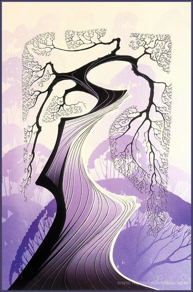 Ti offriamo una riproduzione artigianale su tela dell'opera famosa 'Carmel Cypress' di Eyvind Earle, dal Museo delle Riproduzioni.