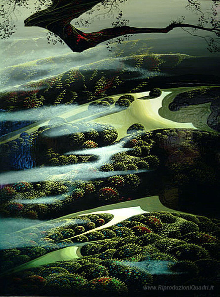 Ti offriamo una riproduzione artigianale su tela dell'opera famosa 'Carmel Valley Memoryl' di Eyvind Earle, dal Museo delle Riproduzioni.